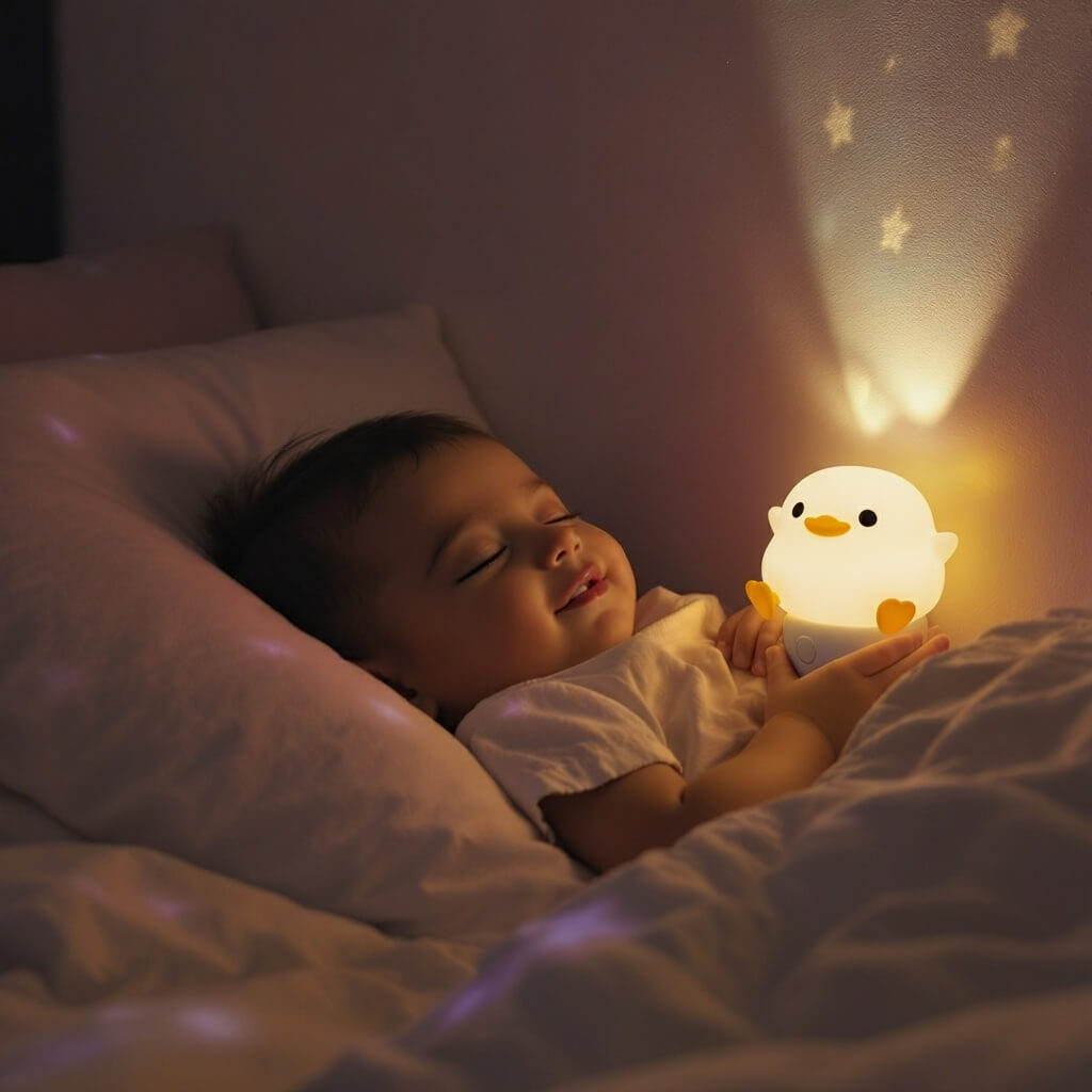 מנורת לילה רכה ובטוחה לילדים עשויה מסיליקון איכותי ונעים למגע עם טיימר לכיבוי אוטומטי ונטענת על ידי כבל Type C.
